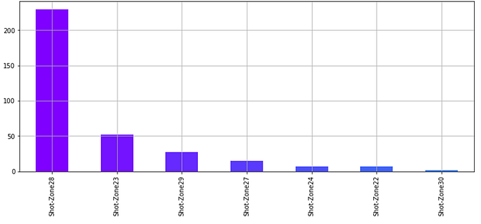 Before the Apriori is performed the data has been analysed to check if it makes sense. Once the item sets are generated, they are further described in Figure 2 which outlines the most common event-zone in each position before a shot was taken.